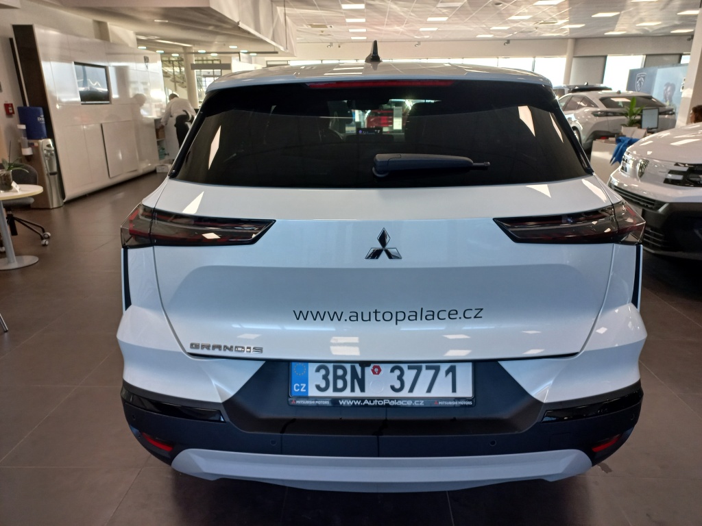 6 reproduktorů, Plně digitální přístrojový panel se 7" TFT displejem, Bezdrátové nabíjení mobilního telefonu, Datový a nabíjecí vstup USB-C na předním panelu (x2), Ovládání audiosystému pod volantem, Audiosystém 10,4", podpora bezdrátového Android Auto™ a CarPlay®, Bluetooth®, autorádio AM/FM/DAB (SDA), Automatické aktualizace multimediálního systému, Tlačítko pro nouzové přivolání pomoci (E-Call), Nabíjecí vstup USB-C v zadní části středové konzoly (x2), Propojení s vozidlem a ovládání vybraných funkcí pomocí mobilní aplikace Mitsubishi Motors, 3bodový bezpečnostní pás na předních sedadlech s předpínačem a omezovačem zátěže (x2), Sada pro nouzovou opravu pneumatik, Systém pro analýzu pozornosti řidiče, 3bodový bezpečnostní pás na zadních sedadlech (x3) s předpínačem a omezovačem zátěže (x2), Systém sledování dopravní situace za vozidlem při couvání (RCTA), Systém signalizace nouzového brzdění (ESS), Systém předcházení a zmírňování následků čelního nárazu s detekcí chodců a cyklistů (FCM), Systém sledování mrtvého úhlu (BSW), Systém kontroly tlaku v pneumatikách (TPMS), Antiblokovací brzdový systém (ABS), Dětská pojistka zámků zadních dveří, Multikolizní brzda, Výškově nastavitelné horní úchyty bezpečnostních pásů na předních sedadlech (x2), Elektronický systém rozdělení brzdného účinku (EBD), Elektronický imobilizér, Systém aktivního řízení stability (ASC), Hlavové (okenní) airbagy vpředu (x2), Upozornění na dodržování bezpečného odstupu, Asistent pro bezpečné opuštění vozidla, Systém elektronického řízení trakce (TCL), Možnost uložení vlastního nastavení bezpečnostních asistentů (My Safety Perso), Systém rozpoznávání dopravních značek upravujících rychlost (TSR) s inteligentním asistentem pro dodržení povolené rychlosti, Čelní airbagy řidiče a spolujezdce (x2), spínač deaktivace airbagu spolujezdce, Asistent rozjezdu do kopce (HSA), Systém monitorování a podpory udržování jízdního pruhu (LDW), Nouzový brzdový asistent (EBA), Spodní kryt předního nárazníku leskle černý, Přední a zadní nárazník v barvě karoserie, Disky kol z lehkých slitin 19" černostříbrné + pneumatiky 225/45 R19, Prostřední boční dveřní sloupek v černé barvě, Tónovaná skla, přední sklo bezpečnostní laminované, zadní pevnostní temperované, Parkovací kamera vzadu s projekcí na displeji audiosystému, Střešní anténa typu Shark fin v leskle černé barvě, Leskle černá mřížka chladiče s chromovými akcenty, Zatmavená zadní boční skla a zatmavené zadní sklo, Elektricky ovládaná, vyhřívaná a sklopná vnější zpětná zrcátka v leskle černé barvě s ukazateli směru, Plastové lemy blatníků (černé), Spodní část zadního nárazníku leskle černá, Zadní střešní spoiler v barvě karoserie, Parkovací senzory vpředu, vzadu a na boční straně (x12), Spodní kryt zadního nárazníku stříbrný, Ochranné spodní lemy dveří leskle černé, Kliky dveří v barvě karoserie, Černé přední sloupky, Funkce dvojitého dna v zavazadlovém prostoru, Přihrádky s držáky nápojů ve výplních předních a zadních dveří, Sluneční clona u řidiče a spolujezdce s LED osvětleným kosmetickým zrcátkem a držákem lístků, LED osvětlení přední části interiéru, Syntetickou kůží obšitý 3ramenný multifunkční volant, Osvětlení zavazadlového prostoru, Chromované vnitřní kliky dveří, LED osvětlení zadní části interiéru, Držáky nápojů vpředu ve středové konzole (x2), Tmavěšedé čalounění stropu, Kryt zavazadlového prostoru, Ambientní podsvícení interiéru, Palubní deska s měkkým obložením, Leskle černé dekory palubní desky, Osvětlená odkládací schránka na straně spolujezdce, Posuvná středová loketní opěrka vpředu s úložným prostorem, Bezrámečkové vnitřní zpětné zrcátko s automatickým stmíváním, Elektronický zámek pátých dveří s dotykovým ovládáním, Elektrické ovládání předních a zadních oken s funkcí AUTO a ochranou proti přivření, Výškově a podélně nastavitelný volant, Komfortní funkce ostřikovače předního skla, Elektrický posilovač řízení (EPS) s variabilním účinkem, Možnost vlastního nastavení jízdních režimů (My Sense), Centrální zamykání dveří s dálkovým ovládáním a dvěma ovladači, Automatická klimatizace s pylovým filtrem, Palubní počítač, ukazatel vnější teploty, Elektrická zásuvka 12V (v přední části středové konzoly) (x1), Elektricky ovládané páté dveře (ovládání pohybem nohy pod zadním nárazníkem), Inteligentní systém bezklíčového ovládání centrálního zamykání s tlačítkem START/STOP, Vyhřívaný volant, Elektrická zásuvka 12V (v zadní části středového tunelu) (x1), Dešťový senzor, Vyhřívané čelní sklo, Systém automatického zastavení a nastartování motoru (AS&G), Elektrická parkovací brzda (EPB) s funkcí Auto Hold, Výdechy ventilace pro zadní cestující (pod předními sedadly a v zadní části středového tunelu), Výškově nastavitelné opěrky hlavy na předních sedadlech (x2), Sedadla ve druhé řadě dělená v poměru 60:40, Posuvná lavice zadního sedadla (160 mm), Výškově nastavitelné opěrky hlavy na zadních sedadlech (x3), Výškově nastavitelné sedadlo spolujezdce, Ukotvení dětské bezpečnostní sedačky ISOFIX (x1 na místě spolujezdce, x2 na zadních sedadlech), Kapsy na zadní straně opěradla řidiče a spolujezdce, Látkové čalounění sedadel černé / šedé, Výškově nastavitelné sedadlo řidiče, Zadní mlhové světlo integrované v nárazníku, Automatická dálková světla (AHB), Přední LED světlomety s manuálním nastavením sklonu, Senzor automatického rozsvěcení světel, Přední