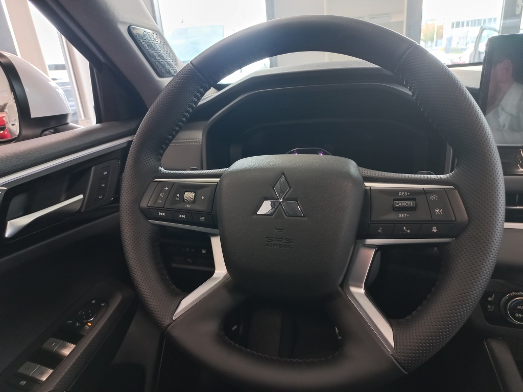 S-AWC pokročilý systém pohonu všech kol s elektronickou volbou režimů (4WD), Aktivní kontrola stáčení kolem svislé osy (AYC), Systém sledování mrtvého úhlu (BSW), Systém sledování dopravní situace za vozidlem při couvání (RCTA), Systém monitorování a podpory udržování jízdního pruhu (LDW), Pokročilý systém pro aktivní udržování v jízdním pruhu Advanced Lane (LDP), Systém pro nouzové udržení v jízdním pruhu (ELKA), Asistent změny jízdního pruhu (LCA), Adaptivní tempomat (ACC), Systém rozpoznávání dopravních značek upravujících rychlost (TSR) s inteligentním asistentem pro dodržení povolené rychlosti, Antiblokovací brzdový systém (ABS), Elektronický systém rozdělení brzdného účinku (EBD), Bezpečnostní systém přednostního brzdění (BOS), Nouzový brzdový asistent (EBA), Systém signalizace nouzového brzdění (ESS), Systém aktivního řízení stability (ASC), Systém elektronického řízení trakce (TCL), Systém stabilizace přívěsu (TSA), Automatické rozsvěcení brzdových světel při regenerativním brzdění, Systém pro analýzu pozornosti řidiče na základě stylu jízdy (DAA), Systém pro sledování pozornosti řidiče pomocí kamery (DMS), Systém předcházení a zmírňování následků čelního nárazu s detekcí chodců a cyklistů (FCM), Systém předcházení a zmírňování následků nárazu při couvání (RAEB), Asistent zmírňování rizika kolize při odbočování na křižovatkách, Tlačítko pro nouzové přivolání pomoci (E-Call), Karoserie s vysokou odolností proti nárazu s použitím prvků z vysokopevnostní oceli (RISE), Systém kontroly tlaku v pneumatikách (TPMS), Sada pro nouzovou opravu pneumatik, Čelní airbagy řidiče a spolujezdce (x2), spínač deaktivace airbagu spolujezdce, Boční airbagy řidiče a spolujezdce (x2), Hlavové (okenní) airbagy vpředu a vzadu (x2), Kolenní airbag řidiče, Středový airbag mezi předními sedadly, 3bodový bezpečnostní pás ELR na předních sedadlech s předpínačem a omezovačem zátěže (x2), 3bodový bezpečnostní pás ELR na zadních sedadlech (x3) s předpínačem a omezovačem zátěže (x2), Výškově nastavitelné horní úchyty bezpečnostních pásů na předních sedadlech (x2), Upozornění na nezapnuté bezpečnostní pásy na všech sedadlech, Dětská pojistka zámků zadních dveří, Ukotvení dětské bezpečnostní sedačky ISOFIX (x2 na zadních sedadlech), Deaktivace stahování zadních oken z místa řidiče, Upozornění na přítomnost cestujících na zadních sedadlech, Plně digitální přístrojový panel s 12,3" TFT displejem, Head Up Display (HUD) s projekcí na čelní sklo, Elektrická parkovací brzda (EPB) s funkcí Auto Hold, Otočný ovladač jízdních režimů (7 režimů), Asistent rozjezdu do kopce (HSA), Asistent pro sjíždění strmých kopců (HDC), Dešťový senzor, Bezrámečkové digitální vnitřní zpětné zrcátko s automatickým stmíváním s projekcí ze zadní kamery, Senzor automatického rozsvěcení světel, Automatická dálková světla (AHB), Elektrický posilovač řízení (EPS) s variabilním účinkem, Multi Around Monitor 360° s projekcí na displeji audiosystému (kamera x4), Parkovací senzory vpředu a vzadu (x8), Automatické uzamčení dveří za jízdy, Alarm, Elektronický imobilizér, Audiosystém 12,3", navigace, podpora bezdrátového Android Auto™ a CarPlay®, Bluetooth®, autorádio AM/FM/DAB (SDA), Ovládání některých funkcí vozidla prostřednictvím hlasových povelů, Podpora online Google služeb, Ozvučení Dynamic Sound Yamaha Ultimate s 12 reproduktory včetně subwooferu a digitálního zesilovače, Datový a nabíjecí vstup USB-C na předním panelu, 3A (x2), Nabíjecí vstup USB-C v zadní části středové konzoly, 3A (x2), Komunikace s vozidlem a ovládání některých jeho funkcí prostřednictvím mobilní aplikace Mitsubishi Motors, Centrální zamykání dveří s dálkovým ovládáním a dvěma ovladači, Inteligentní systém bezklíčového ovládání centrálního zamykání, Startování / vypínání motoru tlačítkem, Ovládání audiosystému na volantu, Výškově a podélně nastavitelný volant, Elektrické ovládání předních a zadních oken s funkcí AUTO a ochranou proti přivření, Panoramatické elektricky ovládané střešní okno se sluneční clonou, Sluneční clony na zadních oknech (stahovací roletky), Elektricky ovládané páté dveře (ovládání pohybem chodidla pod zadním nárazníkem, nastavitelná výška otvírání), Roletka zavazadlového prostoru, Bezdrátové nabíjení mobilního telefonu (15W), Elektrická zásuvka 12V (v přední části středové konzoly) (x1), Elektrická zásuvka 230 V / 1500 W (1x vzadu, 1x v zavazadlovém prostoru), Programovatelný časovač nabíjení vozidla, Programovatelný časovač předehřevu / předvychlazení interiéru vozidla, Palubní počítač, ukazatel vnější teploty, Třízónová automatická klimatizace s pylovým filtrem, Tepelné čerpadlo, Výdechy ventilace pro zadní cestující (pod předními sedadly a v zadní části středového tunelu), Podélné střešní ližiny stříbrné, Tónovaná skla s filtrem UV záření, přední sklo bezpečnostní vrstvené, zadní pevnostní temperované, Zatmavená zadní boční skla a zatmavené zadní sklo, Střešní anténa typu Shark fin, Přední a zadní nárazník v barvě karoserie, Kliky dveří v barvě karoserie, Prostřední a zadní boční dveřní sloupek v leskle černé barvě, Spodní část předního a zadního nárazníku v barvě karoserie, Spodní kryt předního a zadního nárazníku titatově šedý, Spodní lemy dveří v barvě karoserie, Lemy bočních oken chromované, Zadní střešní spojler, Plastové lemy blatníků černé, Dvoubarevné provedení karoserie s černou nebo stříbrnou střechou, Metalický lak, Přední adaptivn