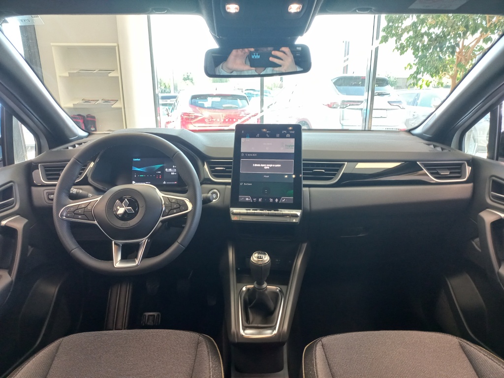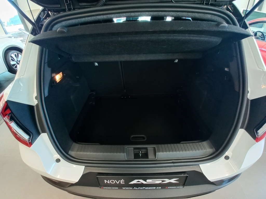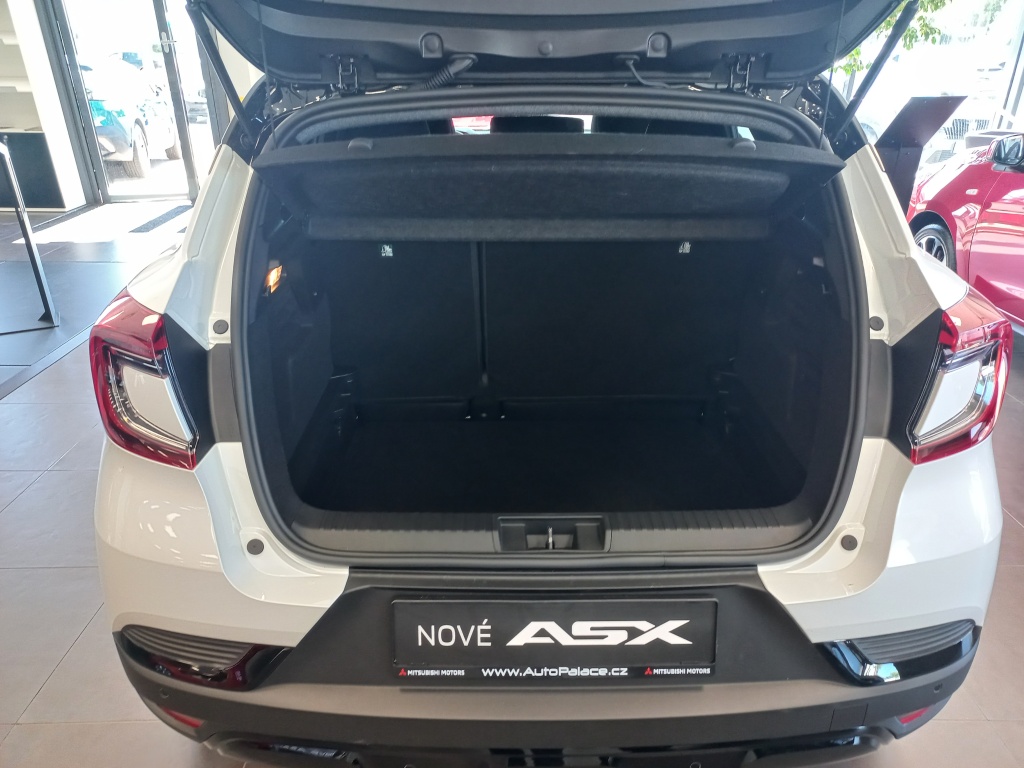 6 reproduktorů, Nabíjecí vstup USB-C v zadní části středové konzoly (x2), Ovládání audiosystému pod volantem, Plně digitální přístrojový panel se 7" TFT displejem, Automatické aktualizace audiosystému, Komunikace s vozidlem a ovládání některých jeho funkcí prostřednictvím mobilní aplikace My Mitsubishi, Bezdrátové nabíjení mobilního telefonu, Tlačítko pro nouzové přivolání pomoci (E-Call), Datový a nabíjecí vstup USB-C na předním panelu (x2), Audiosystém 10,4", podpora bezdrátového Android Auto™ a CarPlay®, Bluetooth®, autorádio AM/FM/DAB (SDA), Aktivní systém pro nouzové udržení v jízdním pruhu (ELKA), Asistent rozjezdu do kopce (HSA), Výškově nastavitelné horní úchyty bezpečnostních pásů na předních sedadlech (x2), Systém sledování dopravní situace za vozidlem při couvání (RCTA), Asistent pro bezpečné opuštění vozidla, 3bodový bezpečnostní pás ELR na zadních sedadlech (x3) s předpínačem a omezovačem zátěže (x2), Nouzový brzdový asistent (EBA), Systém sledování mrtvého úhlu (BSW), Systém rozpoznávání dopravních značek upravujících rychlost (TSR) s inteligentním asistentem pro dodržení povolené rychlosti, Aktivní systém udržení v jízdním pruhu (LKA), Dětská pojistka zámků zadních dveří, Systém signalizace nouzového brzdění (ESS), Elektronický imobilizér, Čelní airbagy řidiče a spolujezdce (x2), spínač deaktivace airbagu spolujezdce, Systém kontroly tlaku v pneumatikách (TPMS), Antiblokovací brzdový systém (ABS), Boční airbagy řidiče a spolujezdce (x2), hlavové (okenní) airbagy vpředu a vzadu (x2), Systém pro analýzu pozornosti řidiče, Elektronický systém rozdělení brzdného účinku (EBD), Systém předcházení a zmírňování následků čelního nárazu s detekcí chodců a cyklistů (FCM), Systém monitorování a podpory udržování jízdního pruhu (LDW), Systém aktivního řízení stability (ASC), Multikolizní brzda, Sada pro nouzovou opravu pneumatik, Systém elektronického řízení trakce (TCL), 3bodový bezpečnostní pás ELR na předních sedadlech s předpínačem a omezovačem zátěže (x2), Technologie pohonu mild-hybrid 12V, Zatmavená zadní boční skla a zatmavené zadní sklo, Plastové lemy blatníků (černé), Zadní střešní spoiler, Leskle černá mřížka chladiče s chromovými akcenty, Parkovací kamera vzadu s projekcí na displeji audiosystému, Kliky dveří v barvě karoserie, Parkovací senzory vpředu, vzadu a na boční straně (x12), Spodní kryt předního nárazníku leskle černý, Disky kol z lehkých slitin 18" černostříbrné + pneumatiky 215/55 R18, Ochranné spodní lemy dveří černé, Střešní anténa typu Shark fin, Elektricky ovládaná, vyhřívaná a sklopná vnější zpětná zrcátka v leskle černé barvě s ukazateli směru, Tónovaná skla, přední sklo bezpečnostní laminované, zadní pevnostní temperované, Spodní kryt zadního nárazníku leskle černý, Lemy bočních oken stříbrné / chromované, Prostřední boční dveřní sloupek v černé barvě, Přední a zadní nárazník v barvě karoserie, Tmavěšedé čalounění stropu, Ambientní podsvícení interiéru, Kryt zavazadlového prostoru, Palubní deska s měkkým obložením, Držáky nápojů vpředu ve středové konzole (x2), Upozornění na dodržování bezpečného odstupu, Podélné střešní ližiny stříbrné, Posuvná středová loketní opěrka vpředu s úložným prostorem, Vnitřní zpětné zrcátko s automatickým stmíváním, Chromované vnitřní kliky dveří, Osvětlená odkládací schránka na straně spolujezdce, Funkce dvojitého dna v zavazadlovém prostoru, Osvětlení zavazadlového prostoru, Leskle černé dekory palubní desky, Syntetickou kůží obšitý 3ramenný multifunkční volant, LED osvětlení přední části interiéru, LED osvětlení zadní části interiéru, Vyvýšená přední konzola, Přihrádky s držáky nápojů ve výplních předních a zadních dveří, Sluneční clona u řidiče a spolujezdce s LED osvětleným kosmetickým zrcátkem a držákem lístků, Čerrné přední sloupky, Systém automatického zastavení a nastartování motoru (AS&G), Centrální zamykání dveří s dálkovým ovládáním a dvěma ovladači, Inteligentní systém bezklíčového ovládání centrálního zamykání s tlačítkem START/STOP, Tempomat s ovládáním na volantu, Výškově a podélně nastavitelný volant, Elektronický zámek pátých dveří s dotykovým ovládáním, Komfortní funkce ostřikovače předního skla, Omezovač rychlosti s ovládáním na volantu, Elektrická parkovací brzda (EPB) s funkcí Auto Hold, Vyhřívaný volant, Možnost vlastního nastavení jízdních režimů (My Sense), Palubní počítač, ukazatel vnější teploty, Výdechy ventilace pro zadní cestující (pod předními sedadly a v zadní části středového tunelu), Elektrické ovládání předních a zadních oken s funkcí AUTO a ochranou proti přivření, Dešťový senzor, Automatická klimatizace s pylovým filtrem a filtrem s aktivním uhlím, Tlačítko ECO (asistent pro hospodárnou jízdu), Elektrická zásuvka 12V (v přední části středové konzoly) (x1), Elektrická zásuvka 12V (v zadní části středového tunelu) (x1), Výškově nastavitelné sedadlo řidiče, Výškově nastavitelné opěrky hlavy na předních sedadlech (x2), Výškově nastavitelné opěrky hlavy na zadních sedadlech (x3), Kapsy na zadní straně opěradla řidiče a spolujezdce, Výškově nastavitelné sedadlo spolujezdce, Ukotvení dětské bezpečnostní sedačky ISOFIX (x1 na místě spolujezdce, x2 na zadních sedadlech), Látkové čalounění sedadel černé / šedé, Vyhřívaná přední sedadla (2 stupně teploty), Sedadla ve druhé řadě dělená v poměru 60:40, Posuvná lavice zadního sedadla (160 mm), Komfortní funkce světel "Coming ho