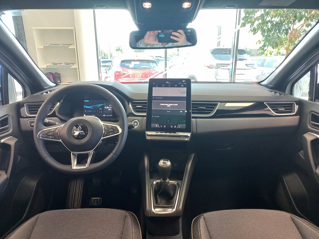 Čelní airbagy řidiče a spolujezdce (x2), spínač deaktivace airbagu spolujezdce, Boční airbagy řidiče a spolujezdce (x2), hlavové (okenní) airbagy vpředu a vzadu (x2), Antiblokovací brzdový systém (ABS), Elektronický systém rozdělení brzdného účinku (EBD), Nouzový brzdový asistent (EBA), Systém signalizace nouzového brzdění (ESS), Systém aktivního řízení stability (ASC), Systém elektronického řízení trakce (TCL), Asistent rozjezdu do kopce (HSA), Upozornění na dodržování bezpečného odstupu, Systém monitorování a podpory udržování jízdního pruhu (LDW), Aktivní systém udržení v jízdním pruhu (LKA), Systém sledování mrtvého úhlu (BSW), Systém sledování dopravní situace za vozidlem při couvání (RCTA), Sada pro nouzovou opravu pneumatik, Elektronický imobilizér, Dětská pojistka zámků zadních dveří, 3bodový bezpečnostní pás ELR na předních sedadlech s předpínačem a omezovačem zátěže (x2), 3bodový bezpečnostní pás ELR na zadních sedadlech (x3) s předpínačem a omezovačem zátěže (x2), Výškově nastavitelné horní úchyty bezpečnostních pásů na předních sedadlech (x2), Přední LED světlomety s manuálním nastavením sklonu, LED denní světla, Zadní kombinovaná LED světla, Senzor automatického rozsvěcení světel, Automatická dálková světla (AHB), Třetí zadní brzdové LED světlo, Přední směrová světla integrovaná v předních světlometech, Zadní mlhové světlo integrované v nárazníku, Komfortní funkce světel "Coming home" a "Welcome light", Elektricky ovládaná, vyhřívaná a sklopná vnější zpětná zrcátka v leskle černé barvě s ukazateli směru, Podélné střešní ližiny stříbrné, Parkovací kamera vzadu s projekcí na displeji audiosystému, Tónovaná skla, přední sklo bezpečnostní laminované, zadní pevnostní temperované, Zatmavená zadní boční skla a zatmavené zadní sklo, Střešní anténa typu Shark fin, Přední a zadní nárazník v barvě karoserie, Kliky dveří v barvě karoserie, Prostřední boční dveřní sloupek v černé barvě, Leskle černá mřížka chladiče s chromovými akcenty, Ochranné spodní lemy dveří černé, Lemy bočních oken stříbrné / chromované, Plastové lemy blatníků (černé), Syntetickou kůží obšitý 3ramenný multifunkční volant, Posuvná středová loketní opěrka vpředu s úložným prostorem, Vnitřní zpětné zrcátko s automatickým stmíváním, Ambientní podsvícení interiéru, Leskle černé dekory palubní desky, Chromované vnitřní kliky dveří, Držáky nápojů vpředu ve středové konzole (x2), Funkce dvojitého dna v zavazadlovém prostoru, Kryt zavazadlového prostoru, LED osvětlení přední části interiéru, LED osvětlení zadní části interiéru, Osvětlená odkládací schránka na straně spolujezdce, Osvětlení zavazadlového prostoru, Výškově nastavitelné sedadlo řidiče, Výškově nastavitelné sedadlo spolujezdce, Výškově nastavitelné opěrky hlavy na předních sedadlech (x2), Výškově nastavitelné opěrky hlavy na zadních sedadlech (x3), Ukotvení dětské bezpečnostní sedačky ISOFIX (x1 na místě spolujezdce, x2 na zadních sedadlech), Kapsy na zadní straně opěradla řidiče a spolujezdce, Centrální zamykání dveří s dálkovým ovládáním a dvěma ovladači, Inteligentní systém bezklíčového ovládání centrálního zamykání s tlačítkem START/STOP, Elektrická parkovací brzda (EPB) s funkcí Auto Hold, Elektrické ovládání předních a zadních oken s funkcí AUTO a ochranou proti přivření, Elektrický posilovač řízení (EPS) s variabilním účinkem, Vyhřívaný volant, Výškově a podélně nastavitelný volant, Dešťový senzor, Možnost vlastního nastavení jízdních režimů (My Sense), Systém automatického zastavení a nastartování motoru (AS&G), Komfortní funkce ostřikovače předního skla, Elektronický zámek pátých dveří s dotykovým ovládáním, Palubní počítač, ukazatel vnější teploty, Ovládání audiosystému pod volantem, 6 reproduktorů, Plně digitální přístrojový panel se 7" TFT displejem, Bezdrátové nabíjení mobilního telefonu, Tlačítko pro nouzové přivolání pomoci (E-Call), Technologie pohonu mild-hybrid 12V, Systém pro analýzu pozornosti řidiče, Systém předcházení a zmírňování následků čelního nárazu s detekcí chodců a cyklistů (FCM), Multikolizní brzda, Aktivní systém pro nouzové udržení v jízdním pruhu (ELKA), Asistent pro bezpečné opuštění vozidla, Systém rozpoznávání dopravních značek upravujících rychlost (TSR) s inteligentním asistentem pro dodržení povolené rychlosti, Parkovací senzory vpředu, vzadu a na boční straně (x12), Spodní kryt předního nárazníku leskle černý, Spodní kryt zadního nárazníku leskle černý, Zadní střešní spoiler, Přihrádky s držáky nápojů ve výplních předních a zadních dveří, Sluneční clona u řidiče a spolujezdce s LED osvětleným kosmetickým zrcátkem a držákem lístků, Čerrné přední sloupky, Tmavěšedé čalounění stropu, Látkové čalounění sedadel černé / šedé, Vyhřívaná přední sedadla (2 stupně teploty), Sedadla ve druhé řadě dělená v poměru 60:40, Posuvná lavice zadního sedadla (160 mm), Automatická klimatizace s pylovým filtrem a filtrem s aktivním uhlím, Tlačítko ECO (asistent pro hospodárnou jízdu), Elektrická zásuvka 12V (v přední části středové konzoly) (x1), Elektrická zásuvka 12V (v zadní části středového tunelu) (x1), Audiosystém 10,4", podpora bezdrátového Android Auto™ a CarPlay®, Bluetooth®, autorádio AM/FM/DAB (SDA), Automatické aktualizace audiosystému, Komunikace s vozidlem a ovládání některých jeho funkcí prostřednictvím mobilní aplikace My Mitsubishi, Datový a nabíjecí vstup USB-C na předním panelu (x2), Nabíjec