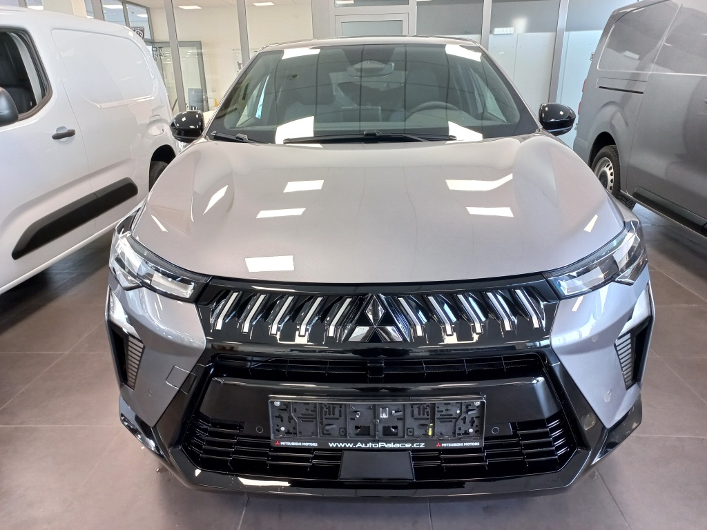 6 reproduktorů, Plně digitální přístrojový panel se 7" TFT displejem, Bezdrátové nabíjení mobilního telefonu, Datový a nabíjecí vstup USB-C na předním panelu (x2), Ovládání audiosystému pod volantem, Audiosystém 10,4", podpora bezdrátového Android Auto™ a CarPlay®, Bluetooth®, autorádio AM/FM/DAB (SDA), Automatické aktualizace multimediálního systému, Tlačítko pro nouzové přivolání pomoci (E-Call), Nabíjecí vstup USB-C v zadní části středové konzoly (x2), Propojení s vozidlem a ovládání vybraných funkcí pomocí mobilní aplikace Mitsubishi Motors, 3bodový bezpečnostní pás na předních sedadlech s předpínačem a omezovačem zátěže (x2), Sada pro nouzovou opravu pneumatik, Systém pro analýzu pozornosti řidiče, 3bodový bezpečnostní pás na zadních sedadlech (x3) s předpínačem a omezovačem zátěže (x2), Systém sledování dopravní situace za vozidlem při couvání (RCTA), Systém signalizace nouzového brzdění (ESS), Systém předcházení a zmírňování následků čelního nárazu s detekcí chodců a cyklistů (FCM), Systém sledování mrtvého úhlu (BSW), Systém kontroly tlaku v pneumatikách (TPMS), Antiblokovací brzdový systém (ABS), Dětská pojistka zámků zadních dveří, Multikolizní brzda, Výškově nastavitelné horní úchyty bezpečnostních pásů na předních sedadlech (x2), Elektronický systém rozdělení brzdného účinku (EBD), Elektronický imobilizér, Systém aktivního řízení stability (ASC), Hlavové (okenní) airbagy vpředu (x2), Upozornění na dodržování bezpečného odstupu, Asistent pro bezpečné opuštění vozidla, Systém elektronického řízení trakce (TCL), Možnost uložení vlastního nastavení bezpečnostních asistentů (My Safety Perso), Systém rozpoznávání dopravních značek upravujících rychlost (TSR) s inteligentním asistentem pro dodržení povolené rychlosti, Čelní airbagy řidiče a spolujezdce (x2), spínač deaktivace airbagu spolujezdce, Asistent rozjezdu do kopce (HSA), Systém monitorování a podpory udržování jízdního pruhu (LDW), Nouzový brzdový asistent (EBA), Spodní kryt předního nárazníku leskle černý, Přední a zadní nárazník v barvě karoserie, Disky kol z lehkých slitin 19" černostříbrné + pneumatiky 225/45 R19, Prostřední boční dveřní sloupek v černé barvě, Tónovaná skla, přední sklo bezpečnostní laminované, zadní pevnostní temperované, Parkovací kamera vzadu s projekcí na displeji audiosystému, Střešní anténa typu Shark fin v leskle černé barvě, Leskle černá mřížka chladiče s chromovými akcenty, Zatmavená zadní boční skla a zatmavené zadní sklo, Elektricky ovládaná, vyhřívaná a sklopná vnější zpětná zrcátka v leskle černé barvě s ukazateli směru, Plastové lemy blatníků (černé), Spodní část zadního nárazníku leskle černá, Zadní střešní spoiler v barvě karoserie, Parkovací senzory vpředu, vzadu a na boční straně (x12), Spodní kryt zadního nárazníku stříbrný, Ochranné spodní lemy dveří leskle černé, Kliky dveří v barvě karoserie, Černé přední sloupky, Funkce dvojitého dna v zavazadlovém prostoru, Přihrádky s držáky nápojů ve výplních předních a zadních dveří, Sluneční clona u řidiče a spolujezdce s LED osvětleným kosmetickým zrcátkem a držákem lístků, LED osvětlení přední části interiéru, Syntetickou kůží obšitý 3ramenný multifunkční volant, Osvětlení zavazadlového prostoru, Chromované vnitřní kliky dveří, LED osvětlení zadní části interiéru, Držáky nápojů vpředu ve středové konzole (x2), Tmavěšedé čalounění stropu, Kryt zavazadlového prostoru, Ambientní podsvícení interiéru, Palubní deska s měkkým obložením, Leskle černé dekory palubní desky, Osvětlená odkládací schránka na straně spolujezdce, Posuvná středová loketní opěrka vpředu s úložným prostorem, Bezrámečkové vnitřní zpětné zrcátko s automatickým stmíváním, Elektronický zámek pátých dveří s dotykovým ovládáním, Elektrické ovládání předních a zadních oken s funkcí AUTO a ochranou proti přivření, Výškově a podélně nastavitelný volant, Komfortní funkce ostřikovače předního skla, Elektrický posilovač řízení (EPS) s variabilním účinkem, Možnost vlastního nastavení jízdních režimů (My Sense), Centrální zamykání dveří s dálkovým ovládáním a dvěma ovladači, Automatická klimatizace s pylovým filtrem, Palubní počítač, ukazatel vnější teploty, Elektrická zásuvka 12V (v přední části středové konzoly) (x1), Elektricky ovládané páté dveře (ovládání pohybem nohy pod zadním nárazníkem), Inteligentní systém bezklíčového ovládání centrálního zamykání s tlačítkem START/STOP, Vyhřívaný volant, Elektrická zásuvka 12V (v zadní části středového tunelu) (x1), Dešťový senzor, Vyhřívané čelní sklo, Systém automatického zastavení a nastartování motoru (AS&G), Elektrická parkovací brzda (EPB) s funkcí Auto Hold, Výdechy ventilace pro zadní cestující (pod předními sedadly a v zadní části středového tunelu), Výškově nastavitelné opěrky hlavy na předních sedadlech (x2), Sedadla ve druhé řadě dělená v poměru 60:40, Posuvná lavice zadního sedadla (160 mm), Výškově nastavitelné opěrky hlavy na zadních sedadlech (x3), Výškově nastavitelné sedadlo spolujezdce, Ukotvení dětské bezpečnostní sedačky ISOFIX (x1 na místě spolujezdce, x2 na zadních sedadlech), Kapsy na zadní straně opěradla řidiče a spolujezdce, Látkové čalounění sedadel černé / šedé, Výškově nastavitelné sedadlo řidiče, Zadní mlhové světlo integrované v nárazníku, Automatická dálková světla (AHB), Přední LED světlomety s manuálním nastavením sklonu, Senzor automatického rozsvěcení světel, Přední